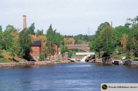 Gammelstaden. Där Vanda å faller ut i Gammelstadsviken bildas en liten fors. Byggnaden t.v. inrymmer Tekniska museet, ett nationellt specialmuseum. Foto: Sakari Niemi.