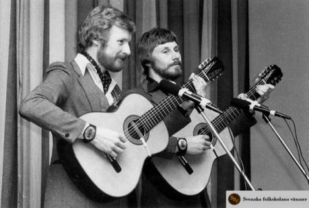 Uffe & Bosse. Pernåbröderna har i drygt fyra decennier hört till eliten av finlandssvenska vissångare. Bild från 1980-t. Foto: Zache Johansson.